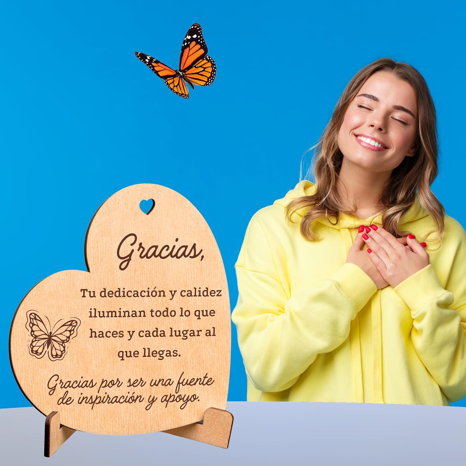 CUBIBOO ART Tarjeta de Agradecimiento en Madera en Forma de Corazón con Soporte